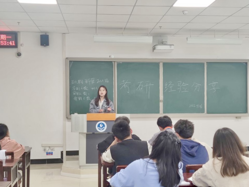 为进一步加强学风建设,激发学子考研热情,交流考研经验,5月16日晚上,生物科学与技术学院安排考研拟录取的优秀学生代表宋群、彭城、龙江英、黄菊和李佳星等人利用晚自习时间到各班进行考研交流分享。