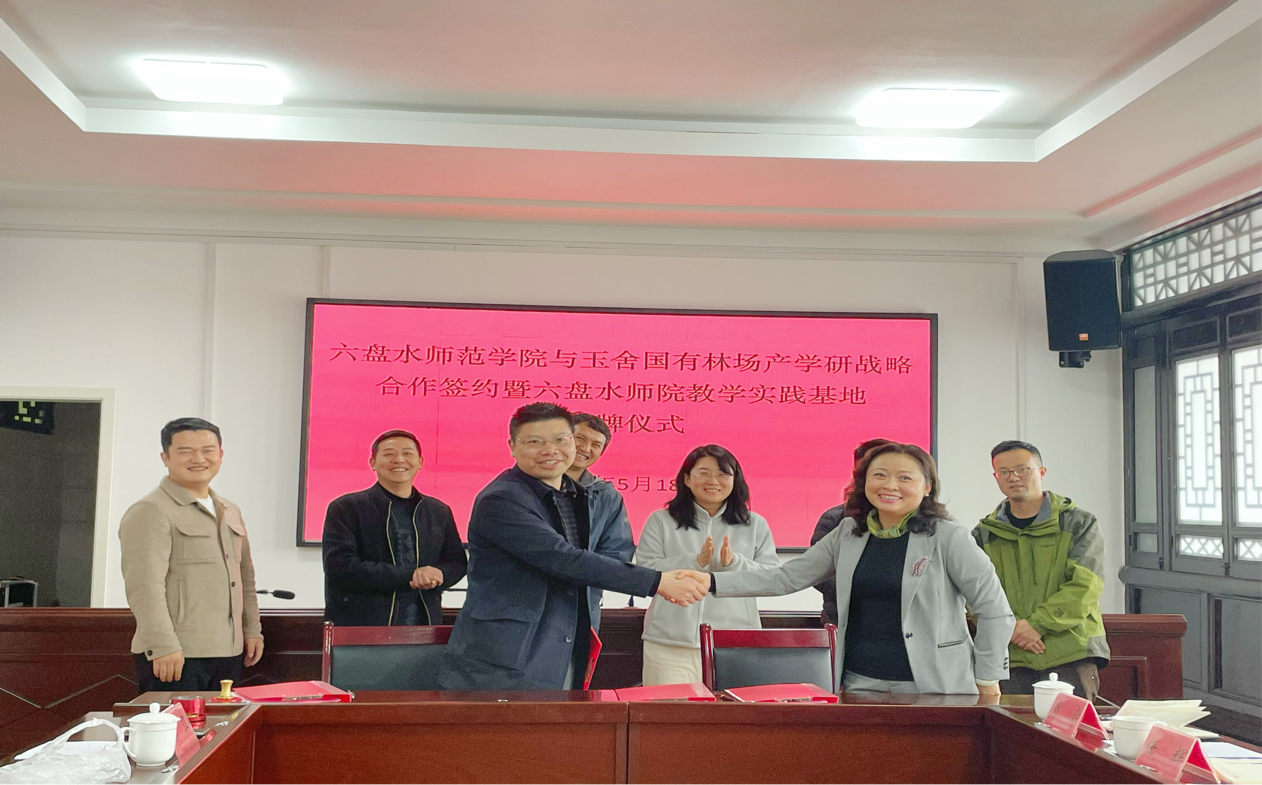 5月18日下午,生物科学与技术学院院长熊荣川一行赴六盘水市水城区玉舍国有林场开展访企拓岗工作,并举行产学研战略合作签约仪式暨教学实践基地揭牌仪式。