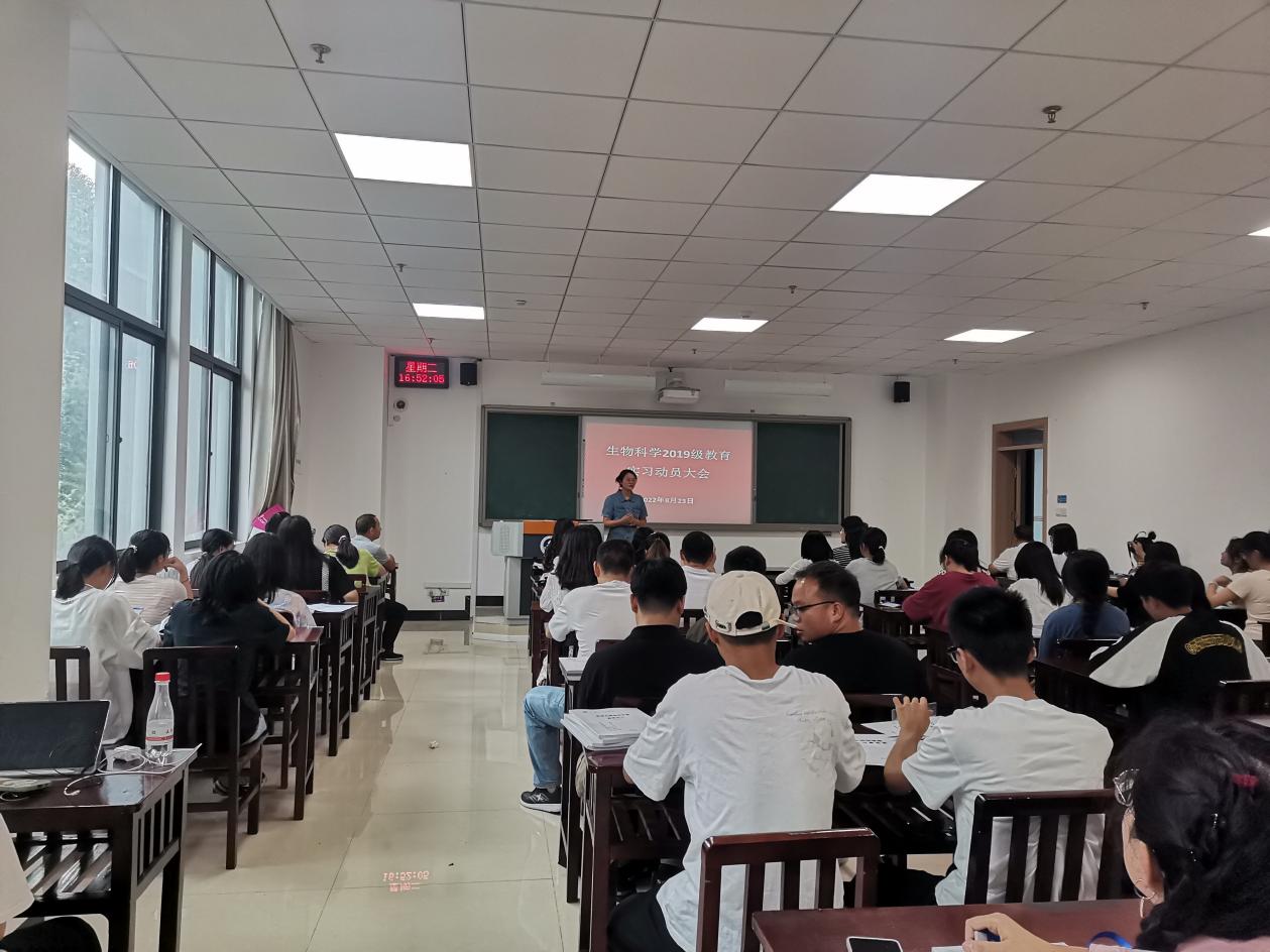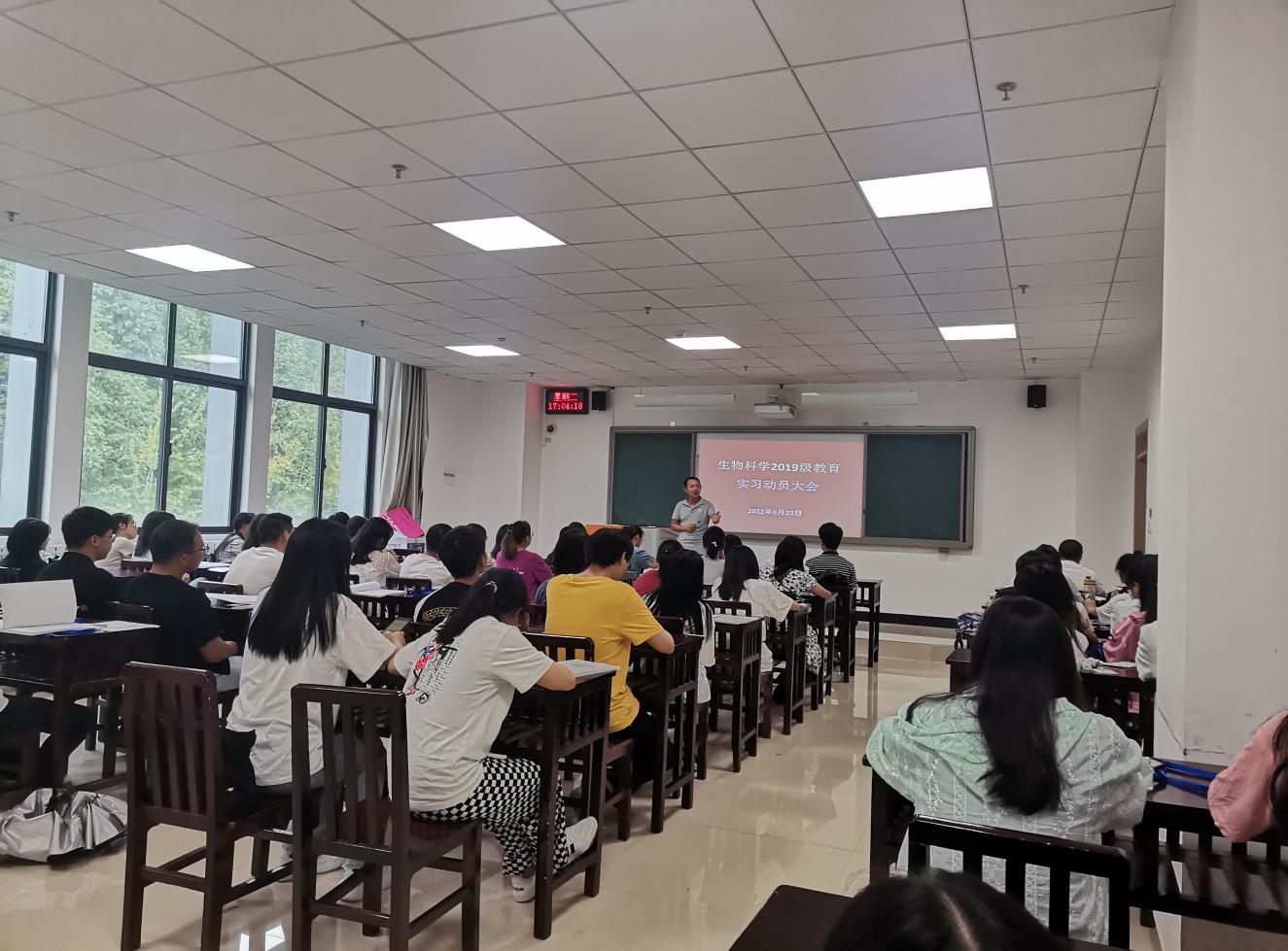 为落实立德树人根本任务,推进师德养成教育,更好地开展师范专业教育实习工作,8月24日下午,生物科学与技术学院生物科学专业在瀚学楼307教室召开师范生教育实习动员大会。学院党委书记王家理出席,生物科学系副主任黄倩、教育实习领队老师王应权及生物科学专业2019级全体学生参加。会议由生物科学系主任张桂梅主持。