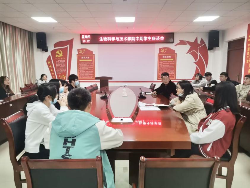 10月20日晚上,生物科学与技术学院于奥学楼A623会议室召开中期学生座谈会。会议由学院教学督导组副组长王应权主持,组长张超以及各班学生代表参加。