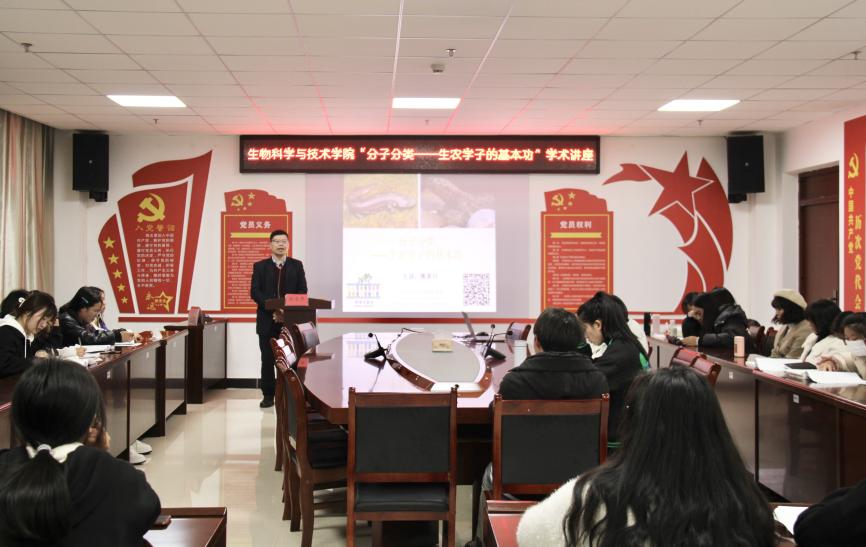 11月23日晚上,生物科学与技术学院于奥学楼A623会议室举办第七届学术活动月系列活动之《分子分类——生农学子的基本功》学术讲座。讲座由学院院长、副教授、博士熊荣川主讲。各专业共计50名学生代表到场聆听。