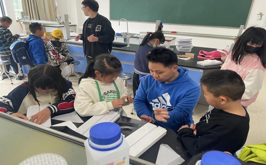 活动中,参加研学的小朋友们在讲解员解说下走进动植物标本馆,近距离观察生物标本,了解生物体态特征与生存环境,探索标本的奥秘,并到户外采集昆虫标本,在学院副教授黄贵强博士和学院学生的帮助下学习整姿、干燥、防腐和保存等昆虫标本制作流程。