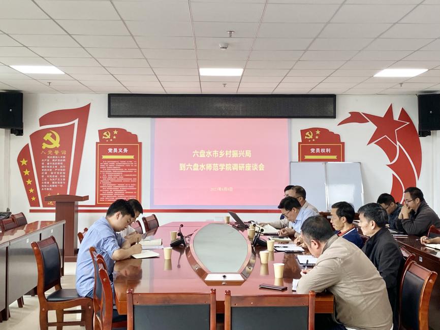 6月6日下午,六盘水市乡村振兴局社会帮扶服务中心主任李兴凯、防止返贫监测中心副主任肖旭到学校调研产业研究需求。学校校长何林,党委委员、副校长艾德春陪同调研。双方在生物科学与技术学院会议室(奥学楼A623会议室)举行交流座谈会,何林主持。学校科研处处长严凯,生物科学与技术学院党委书记王家理,生物科学与技术学院党委副书记、院长熊荣川,对外交流合作处副处长骆波澜出席。相关教师代表参加座谈。