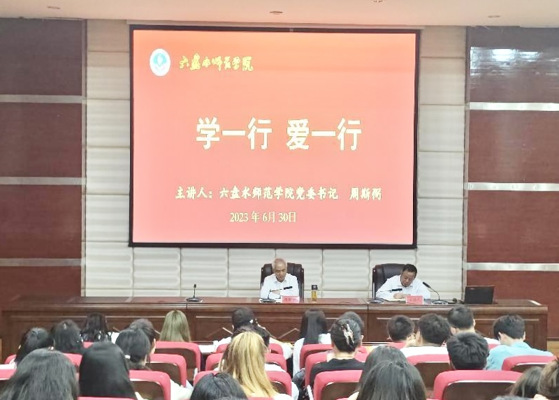 6月30日晚上,学校党委书记周斯弼到博学楼117教室(知行讲堂)为所联系的生物科学与技术学院学生讲授“学一行,爱一行”思政课。生物科学与技术学院党委书记王家理,党委副书记、院长熊荣川,学生科工作人员以及2021级和2022级全体在校学生到场聆听。