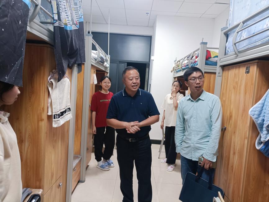 8月24日下午,生物科学与技术学院党委书记王家理,党委副书记、院长熊荣川,党委副书记、纪委书记方玉梅,党委委员、副院长张书东分别带队到桃苑和榆苑的学生宿舍走访看望2023级新生。