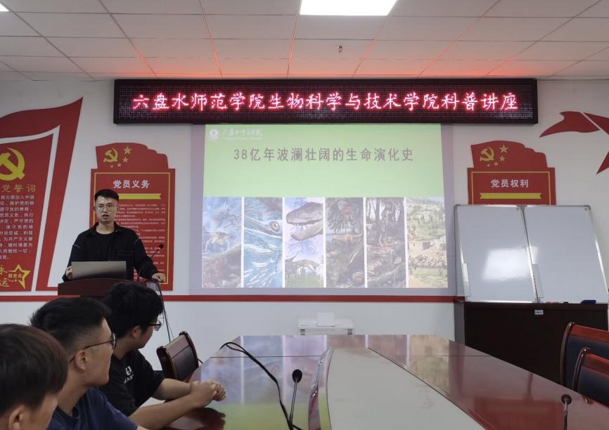 9月6日晚上,生物科学与技术学院在奥学楼A623会议室举办了《38亿年波澜壮阔的生命演化史》科普讲座,讲座由学院副教授、博士陈争鹏主讲。学院师生代表共50余人到场聆听。