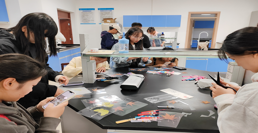 10月24日下午,生物科学与技术学院与bat365外国语学院联合开展了“叶书签制作,感受自然魅力”主题科普活动。外国语学院的40名学生参加了活动,学院副教授黄贵强和陈争鹏首先向同学们普及了叶的构成、形态、叶序等知识,并向同学演示制作方式,讲解制作流程。通过问答的方式,老师向同学们讲述了叶脉类型、作用,并引导同学们各展奇思,体验用书签制作。在老师的指导下,同学们积极尝试动手制作,用各种不同颜色的叶片,充分发挥想象力,用创意和巧思把一片片叶子转变为精致的书签,将叶片之美永恒定格。本次科普活动充分展现了学生艺术创造能力和综合审美能力,激发了他们对大自然的热爱和探索。利用原生态植物材料设计开发系列既亲近自然又能亲身实践的课程,让学生学到植物科学知识、锻炼实践动手能力。(供稿/陈争鹏 翁贵英 编辑校对/符凌云 审核/王家理)