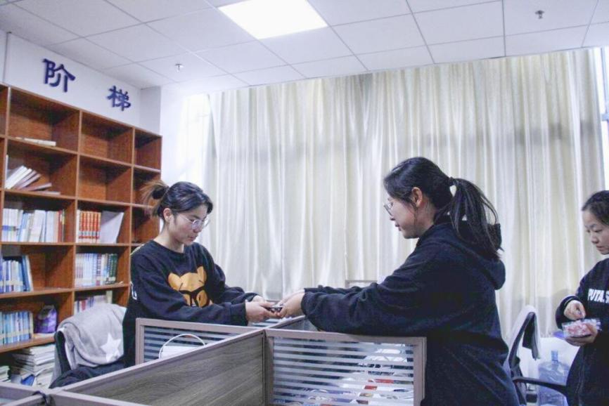 方玉梅与考研学生亲切交流,了解学生面临的学习、生活困难,勉励学生坚定考研信心,并赠送文具,致以美好祝福。