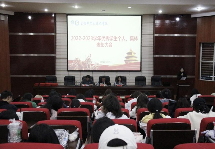 5月9日晚上,生物科学与技术学院在博学楼117教室(知行讲堂)召开2022-2023学年优秀学生个人、集体表彰大会。学院党委书记王家理,党委副书记、纪委书记方玉梅,党委委员、副院长张书东出席。学生科科长、团委书记陈艳艳,辅导员李杰、李婉雪以及2022级、2023级全体学生和考研录取学生代表参加。