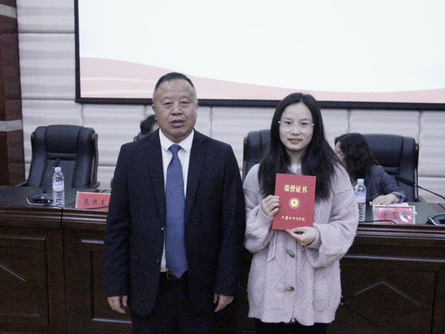 王家理、方玉梅、张书东、陈艳艳分别宣读获奖名单并向受表彰学生颁发荣誉证书。考研学生代表杨椿玉、陈杰怡、张青艳先后作考研经验分享。