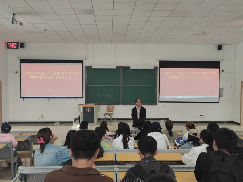 6月28日上午,生物科学与技术学院在勤学楼Q311教室召开2021级生物科学专业师范生教育实习动员大会。会议由教育实习领队老师韩世明主持,2021级生物科学专业全体学生参加。