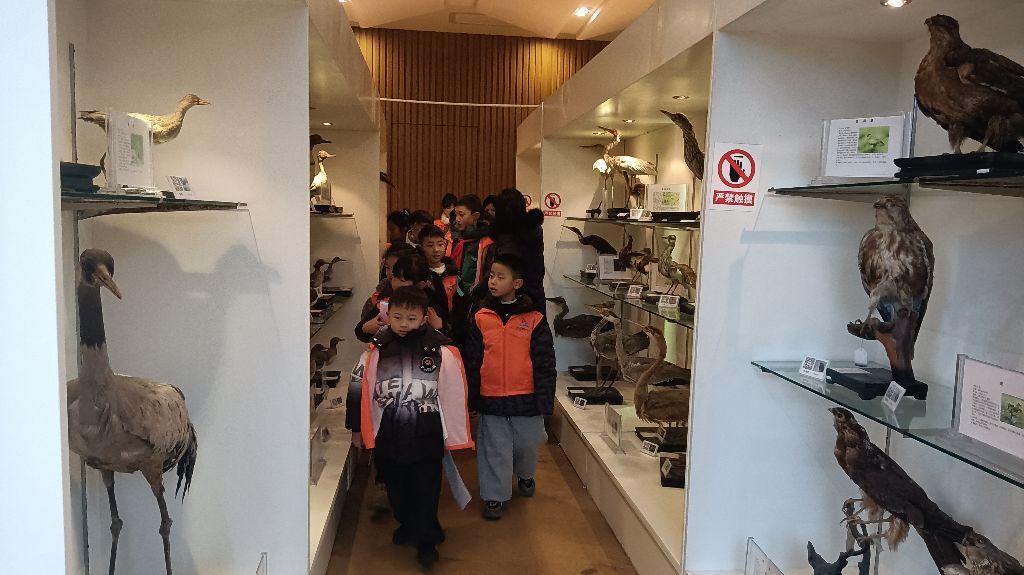 在实验中心主任翁贵英和工作人员钟苗的带领下,贵州野暑博研学中心的师生们走进科普基地,参观了动植物标本展区,并在明湖国家湿地公园观察冬季动植物。陈争鹏博士为学生们讲解生命的起源和生命的进化历程,并带学生观察古生物化石和琥珀标本,指导学生亲手制作化石石膏模型和拓印作品。