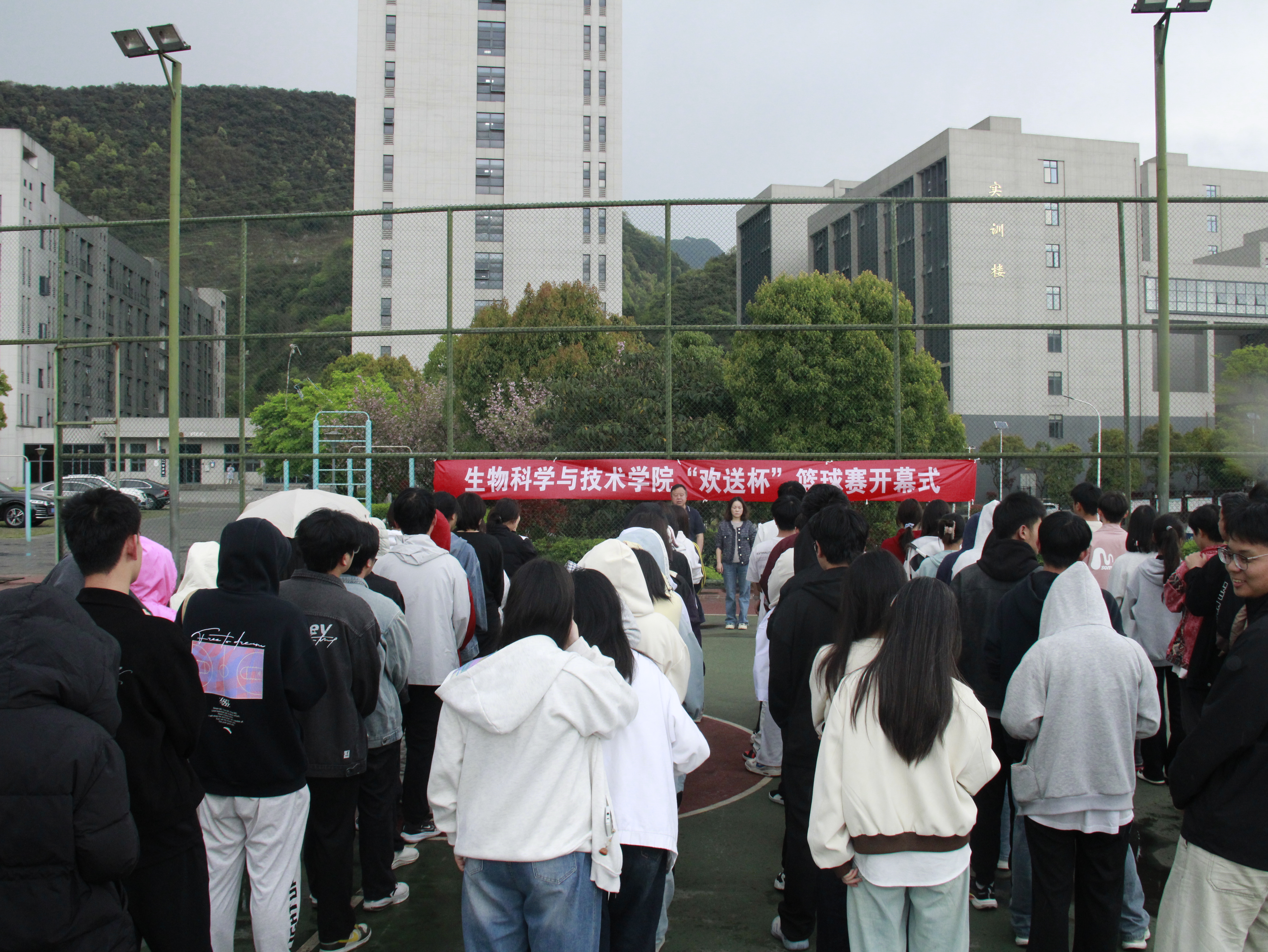 4月16日下午,生物科学与技术学院“欢送杯”篮球开幕式在龙山篮球场举行。学院党委书记王家理,党委副书记、纪委书记方玉梅出席开幕式,各班球员及代表参加。