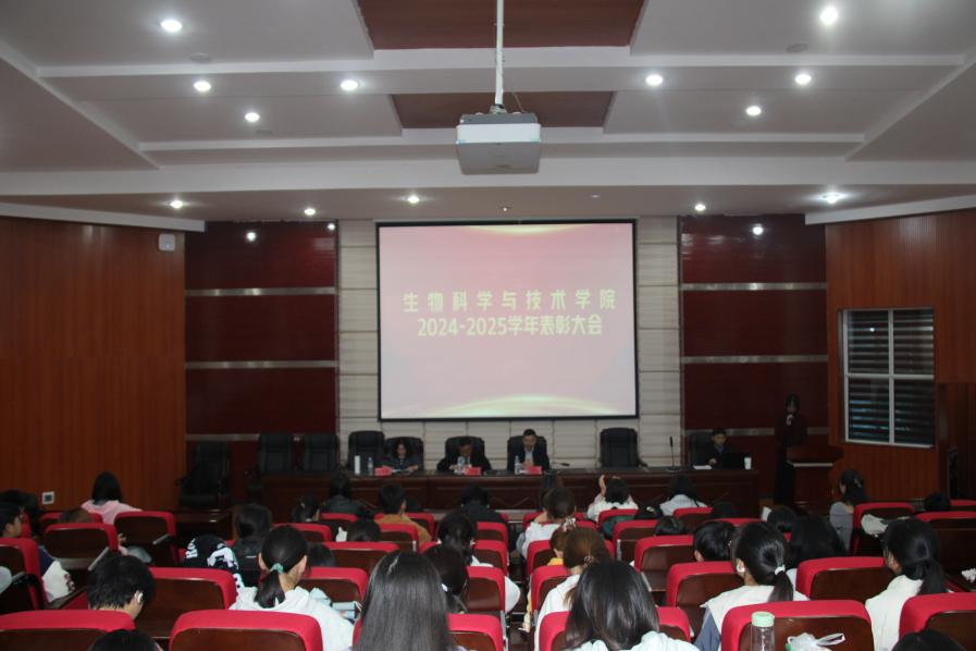 5月15日晚上,生物科学与技术学院在博学楼117教室(知行讲堂)召开2024-2025学年表彰大会,学院党委书记王家理、院长熊荣川、党委副书记方玉梅出席。辅导员李婉雪以及2023级、2024级全体学生和考研录取学生代表参加。