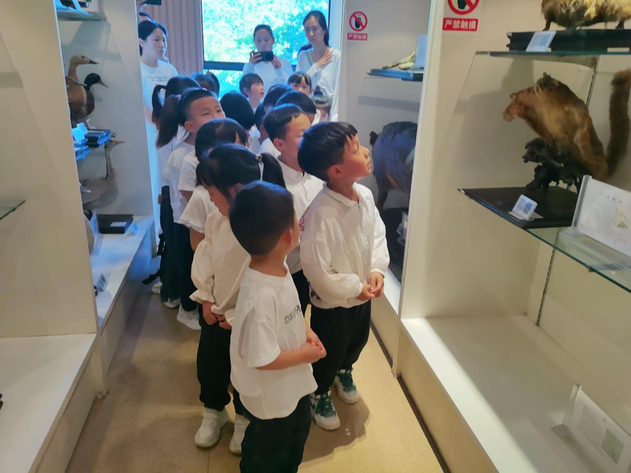 在参观过程中,讲解员用生动有趣、通俗易懂的语言,为小朋友们介绍了馆内陈列的各种珍稀动植物标本,包括国家一级保护动物黑叶猴、金雕,以及珍贵的植物标本银杏等,让孩子们对生物多样性有了更深入的了解。
