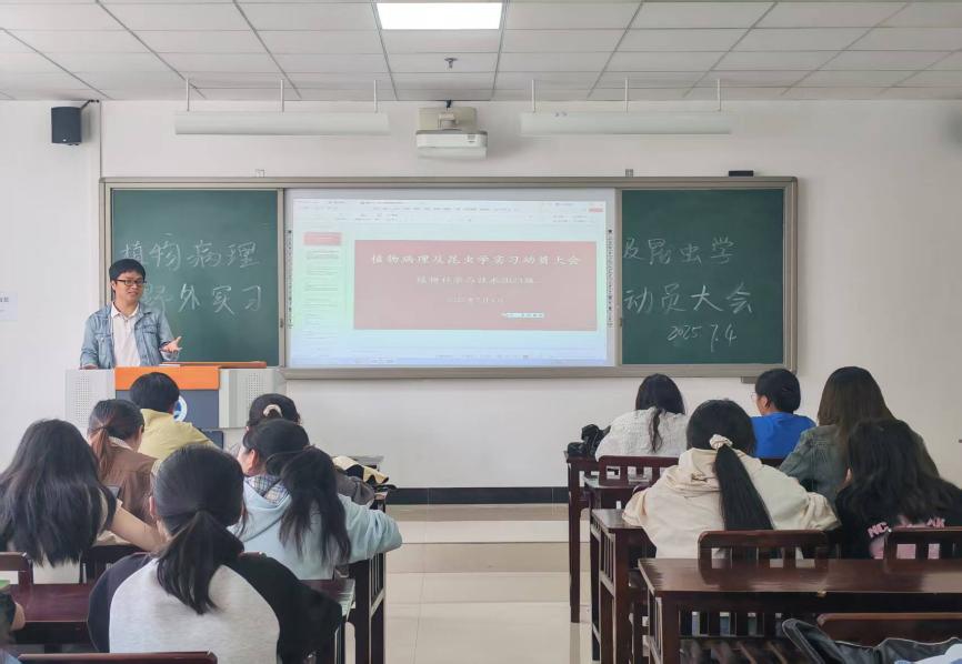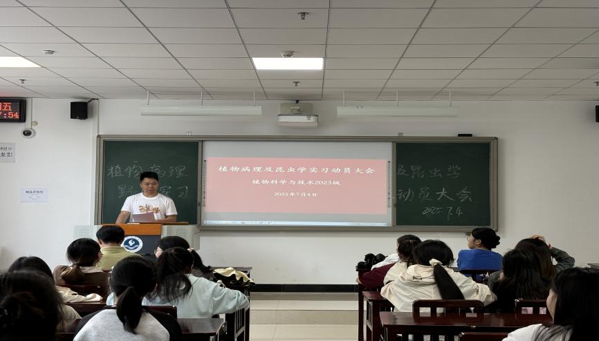 2025年7月4日下午,生物科学与技术学院在翰学楼303成功举办了植物病理及昆虫学实习动员大会。会议由黄贵强老师主持,刘鹏老师和唐国建老师出席,植物科学与技术专业2023级全体学生参与。