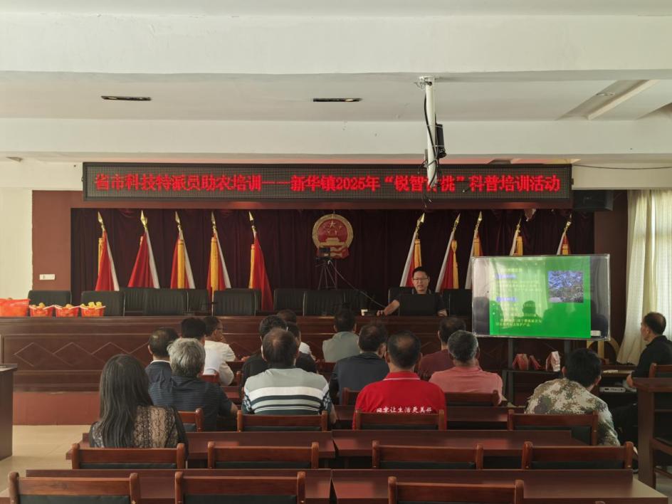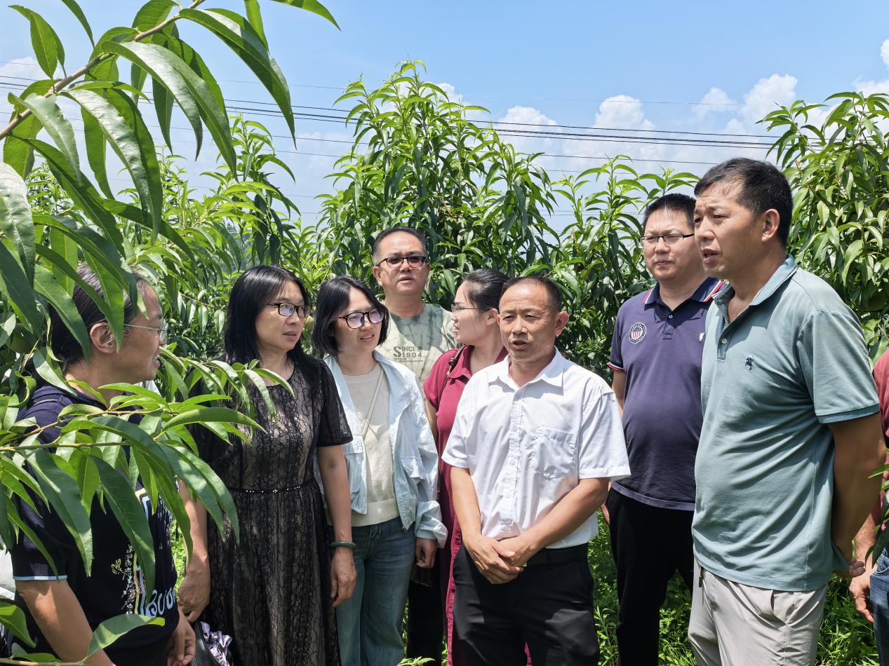 2025年7月14日,bat365在线中国登录入口生物科学与技术学院教工支部徐龙飞、赵新霞、周庆萍会同王绪英、谢斐、杨良静和黄桃技术能手刘志江共7名科技特派员到新华镇开展2025年“锐智黄桃”科普培训活动。培训中,杨良静和刘志江通过PPT向50余名果农讲解黄桃种植技术,包括果园规划、品种选择、树型培育、土肥水管理等。随后,参训人员前往兴隆村科普教育基地进行实地教学。