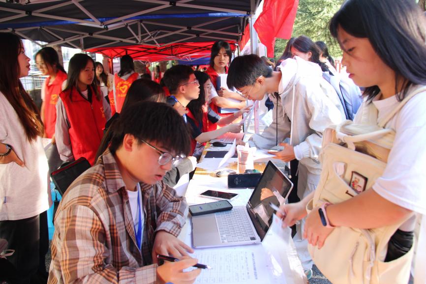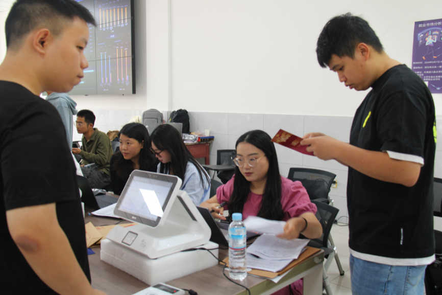 报到现场,各项流程有条不紊地进行着。工作人员分工明确,按照网络注册报到、核验新生材料、发放物资材料的顺序,一步步引导新生快速、顺利地完成报到手续。面对新生们提出的各种问题与疑惑,工作人员们耐心细致地解答,用实际行动诠释着“以心换新”的迎新理念。