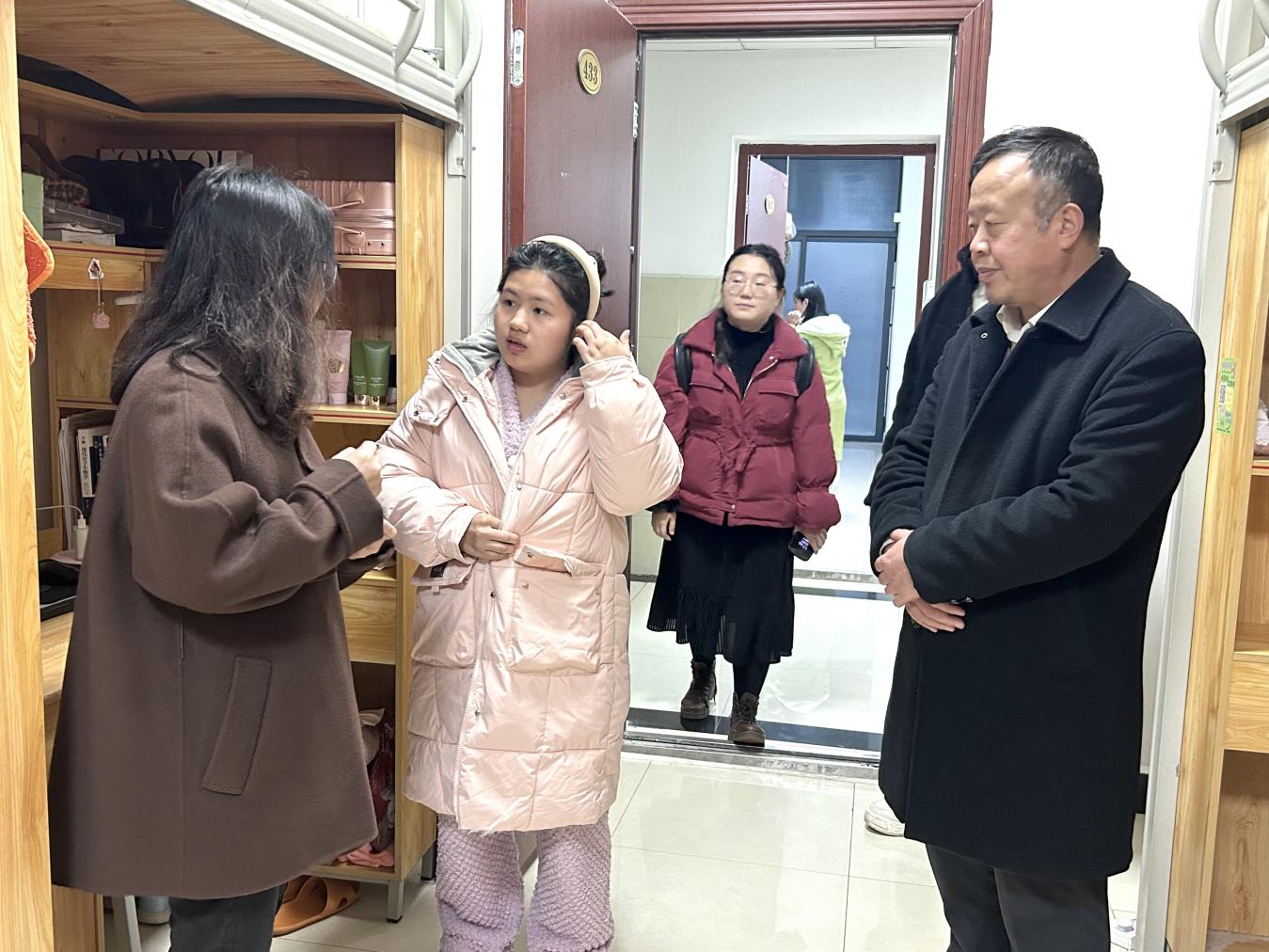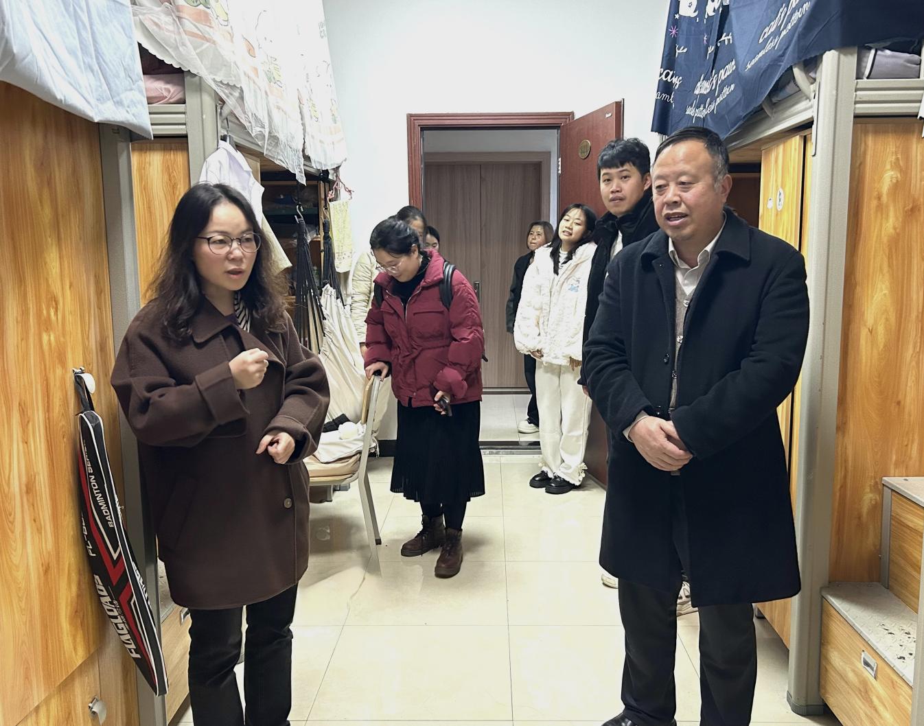 11月12日下午,学院党委书记王家理、党委副书记方玉梅带领学生科科长陈艳艳及辅导员王雪雪、张启文,深入走访本学院学生宿舍,开展安全隐患排查工作。
