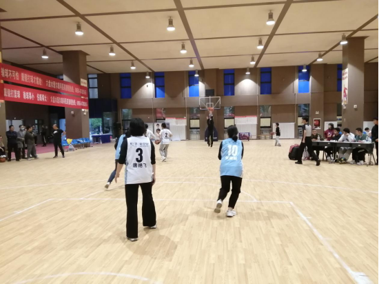 赛前,双方球员都在场上进行热身,从各自的状态来看双方对本场比赛都是志在必得。随着裁判的哨音响起,比赛开始。经过几分钟的对阵,物电学院队员们就表现出了强势的一面,以0:2领先,但数统学院的队员们却不认输,不断奋力追击,进攻、防守、再进攻...比赛进入到尾声,经过队员们的奋力拼搏,比分扳平至2:2,此时队员们信心倍增,势头正盛。裁判哨音再次响起,比赛结束进入加时。加时时长5分钟,经过一小会的休息与调整,延续势头,经过几个回合的决斗,在球员相互挡拆配合下,冶海姣老师给对方以“致命一击”,球进绝杀,哨音响起,裁判示意比赛结束。只见数统学院球员们相互拥抱、欢呼、尖叫,同时场边拉拉队员们也激动得跳了起来,这太不可思议,她们做到了,0:2落后居然反超绝杀了,她们真的做到了。