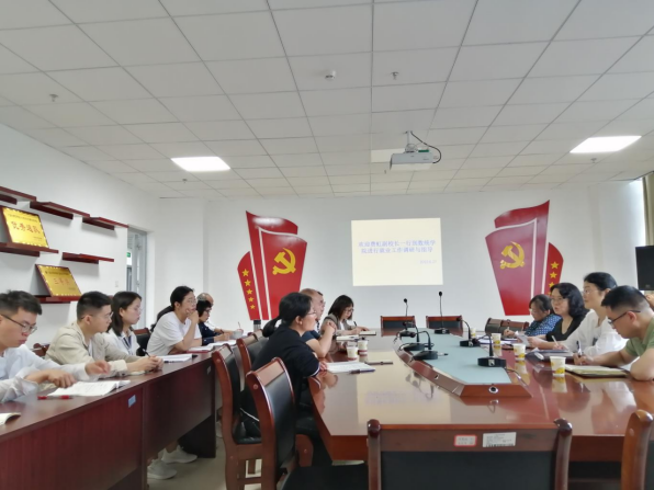 6月27日上午10点,费虹副校长一行到数学与统计学院奥学楼521会议室开展就业调研与指导工作,学院党委书记杨光强、副书记张华伟及全体教师参加会议。