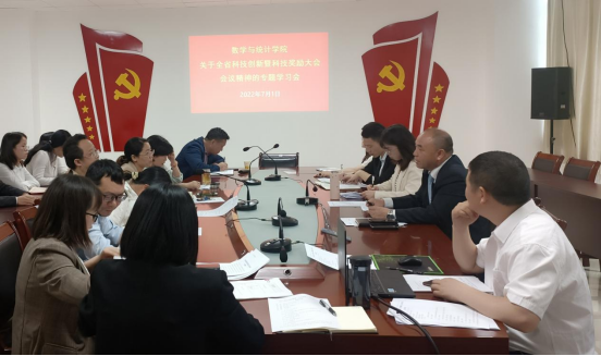 7月1日上午,我院在奥学楼A521会议室召开学习全省科技创新大会暨科学技术奖励大会精神专题会议,会议由党委书记杨光强主持,全体教职工参与。