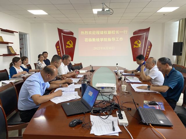 8月30日上午,在奥学楼521会议室,校党委委员、副校长程绪权率人事处处长左金洪、副处长袁瑞品、陶中莉一行莅临数学与统计学院对师资情况进行调研,围绕人才引进、学院规划、教学工作量等问题展开座谈。会议由院长宁宝权主持,数学与统计学院党委书记杨光强、党委副书记张华伟、院长助理佘连兵及各系、部、室负责人、各专项负责人参加会议。