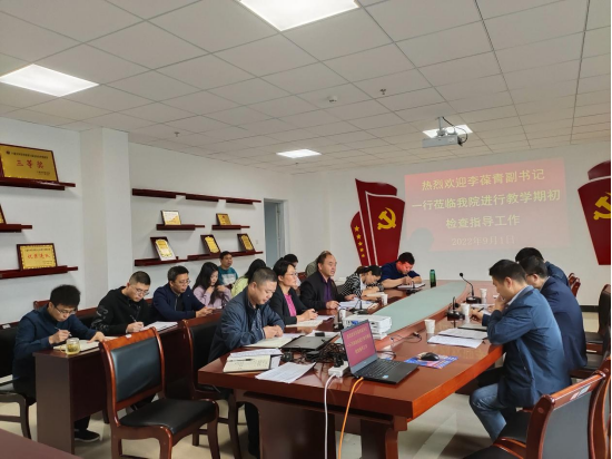 首先,杨光强书记向检查组汇报了学院新学期的各项教学准备情况,包括学院党政办公室、教学科研科、学生科、实验中心、各教学系(部)的开学准备自查情况,确保开学教学工作顺利开展。