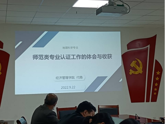 应数学与统计学院院长宁宝权的邀请,9月22日下午,经济管理学院副院长代稳教授在奥学楼521会议室为我院全体教职工作师范专业认证培训。会议由院长宁宝权主持,学院党委书记杨光强、副书记张华伟、院长助理佘连兵及全体教师参加会议。