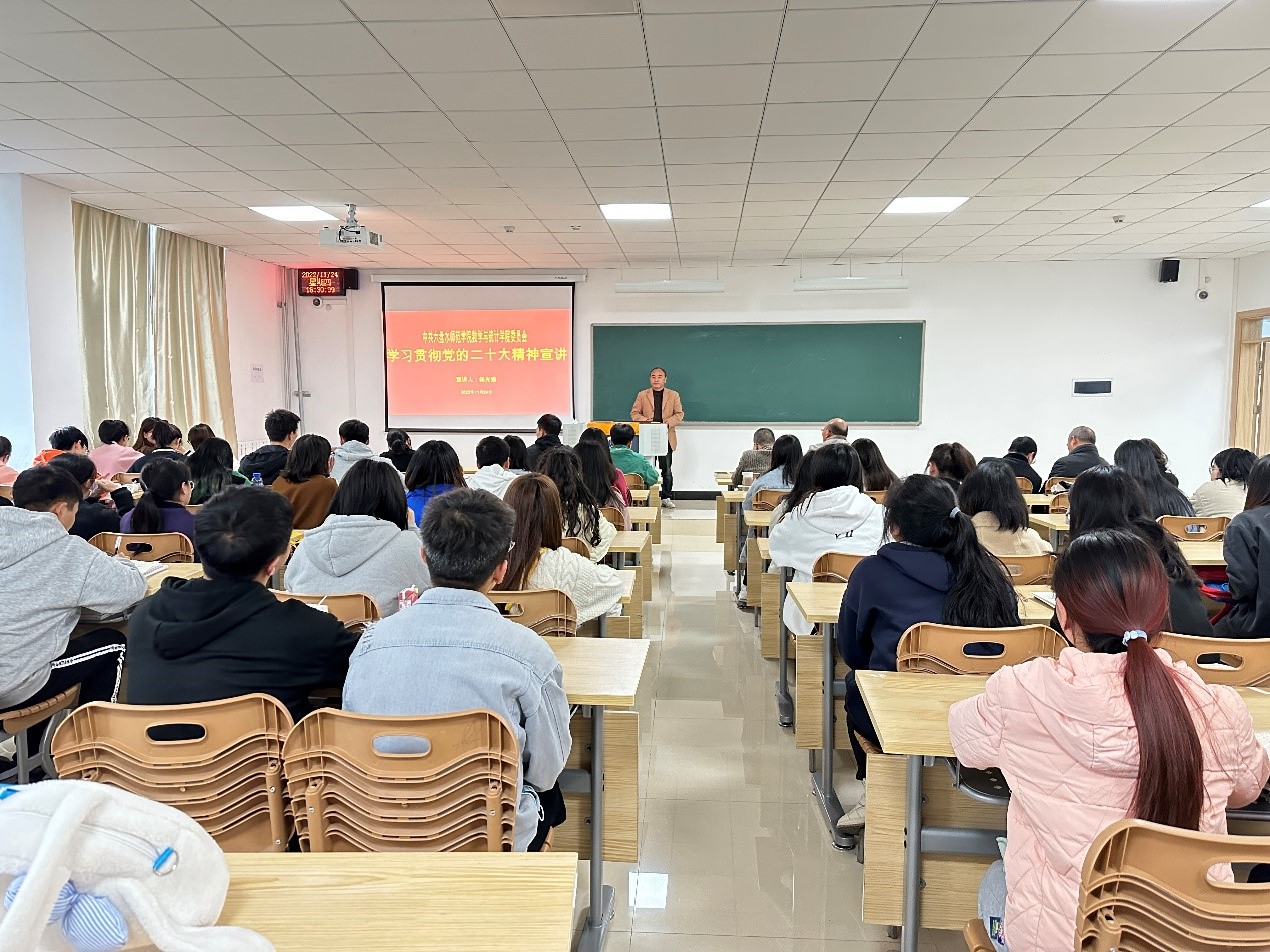 11月24日下午,学院党委书记杨光强在勤学楼407宣讲党的二十大精神,学院教职工及2020、2021级60名学生代表到场参加学习。(供稿/彭良超 编辑校对/王曼菱 审核/杨光强)