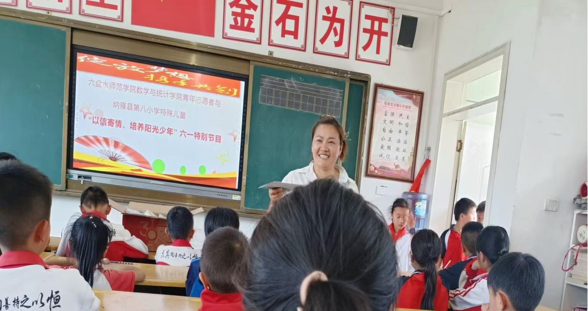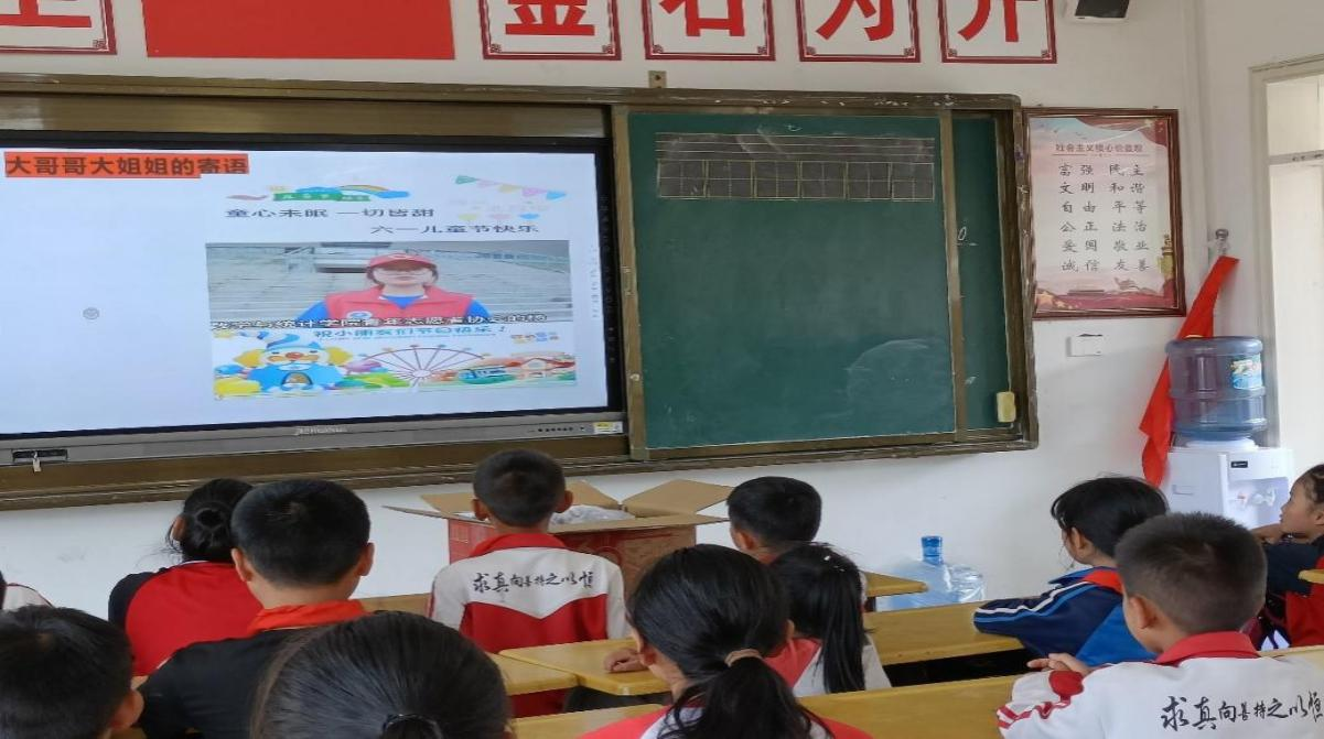 “六一”下午,纳雍八小负责对接志愿团队的杨西敏老师将73名小朋友召集在一起,为他们详细介绍了此次志愿服务项目并播放了志愿者们录制的视频。接着,杨老师为小朋友们分发收到的信件及节日小礼物。