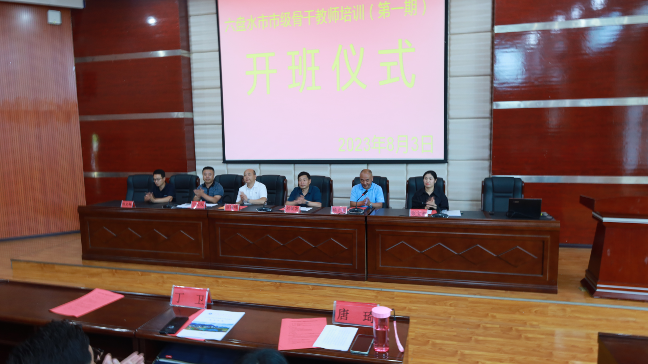 8月3日,六盘水市市级骨干教师培训班开班典礼在bat365在线中国登录入口博学楼117学术报告厅召开。六盘水市教育局二级调研员刘朝发、bat365在线中国登录入口继续教育学院院长张凌峰、bat365在线中国登录入口数学与统计学院党委书记杨光强、院长宁宝权、六盘水市教育局教师工作科张宝密科长、项目负责人张文林及项目组成员、六盘水市市级骨干教师共计172人参加开班典礼。开班典礼由杨光强主持。
