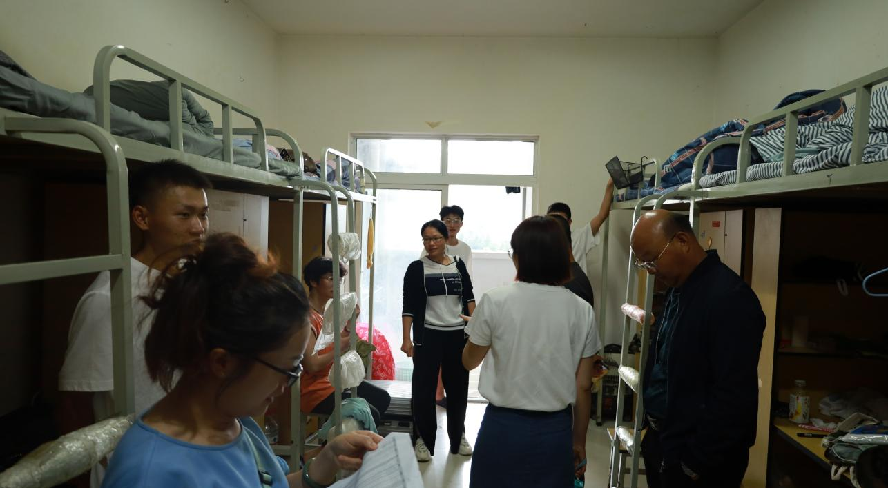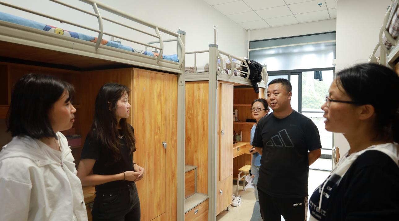 在走访寝室过程中,院长宁宝权对新生的到来表示热烈欢迎,他亲切慰问了刚入住新生寝室的学子们,关心大家刚来到新学校的感受,深入了解大家在学习生活各方面的需要。党委副书记张华伟对同学们顺利考入我院表示赞许和鼓励,她勉励同学们要在打好坚实的基础上更上一层楼,不断提升自己、挑战自我,努力成为更优秀的自己。新生辅导员龙江莉叮嘱新生初入校园,要提高安全防范意识,确保人身财产安全,谨防诈骗。