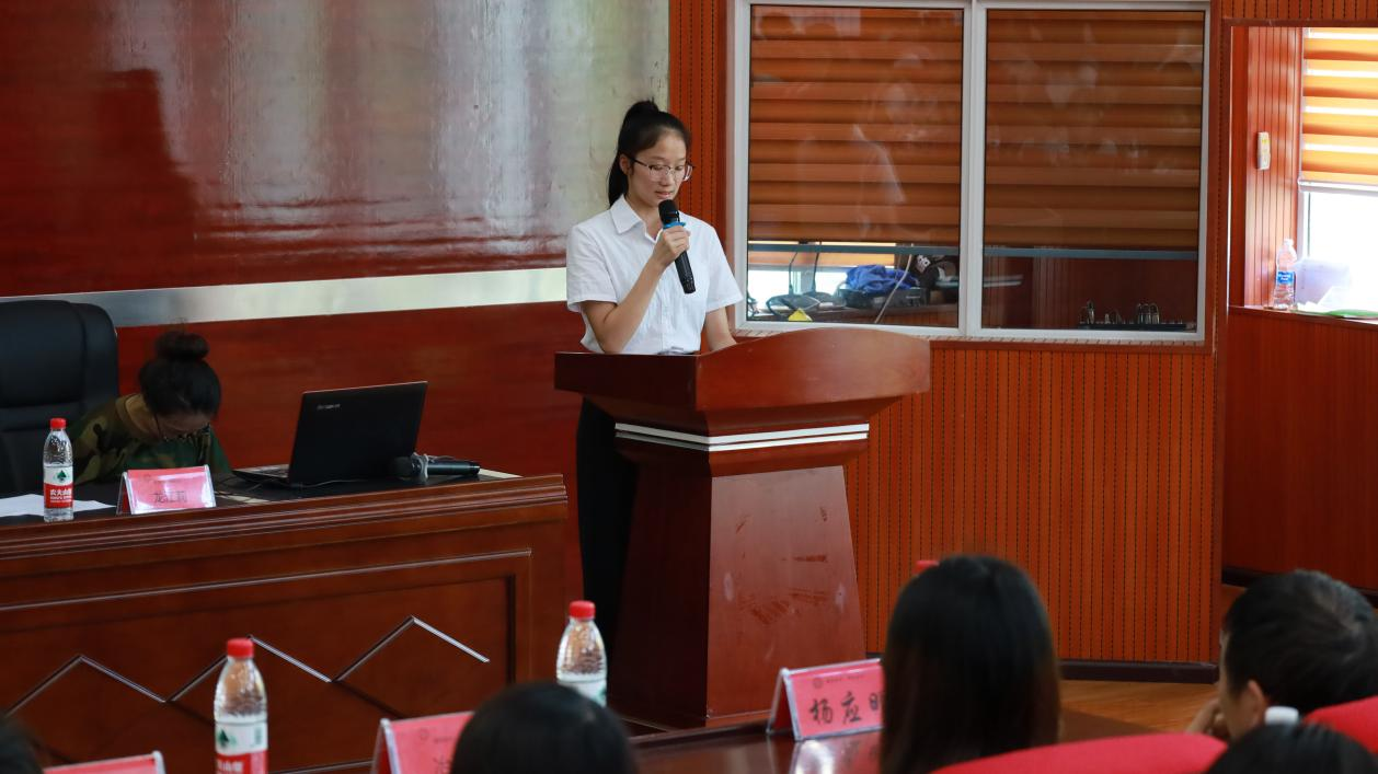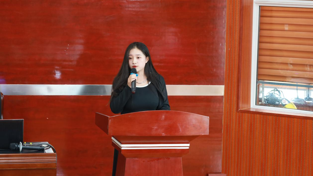 接着,老生代表钟玲同学发言。她与同学们分享了自身经历,希望同学们早日明确自己的职业规划,朝着自己的目标去努力奋斗。最后,她对参会的老师和同学表达了自己的良好祝愿。