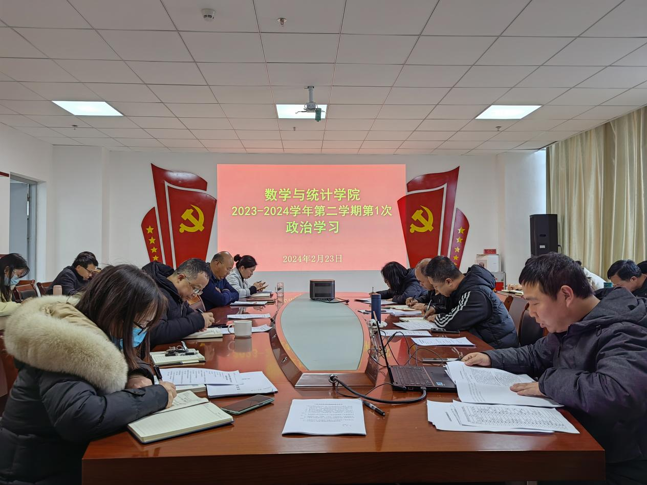 2月23日,数学与统计学院在奥学楼521会议室召开2023-2024学年度第二学期第一次教职工大会,会议由院长宁宝权主持,学院党委书记杨光强、副书记张华伟、副院长佘连兵及全体教师参加会议。