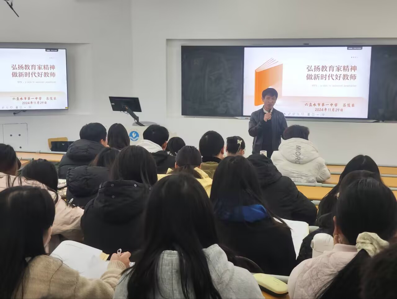 11月29日,bat365在线中国登录入口数学与统计学院邀请六盘水市第一中学吕俊臣副校长,为数学与应用数学专业师范生带来了一场题为“弘扬教育家精神 做新时代好教师”的讲座。本次讲座旨在引导未来的教育工作者们理解和实践新时代教师的核心素养与责任。