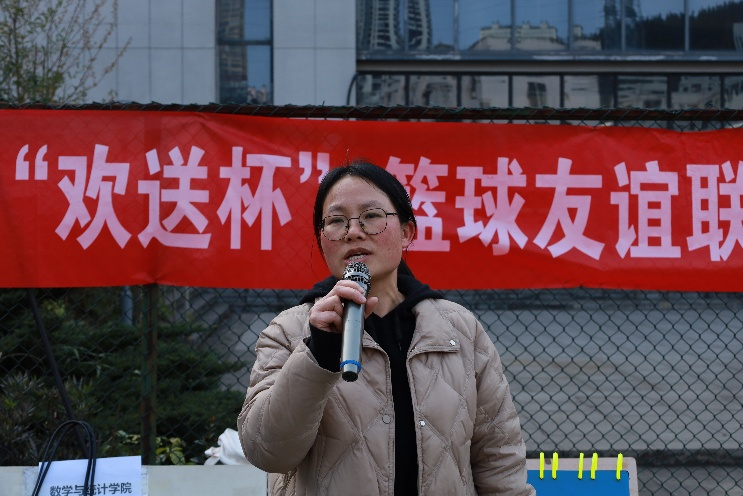 随后,裁判员代表徐摞同学和球员代表吴继学同学分别宣誓。最后,张书记宣布数学与统计学院2025年“欢送杯”篮球赛正式开赛。