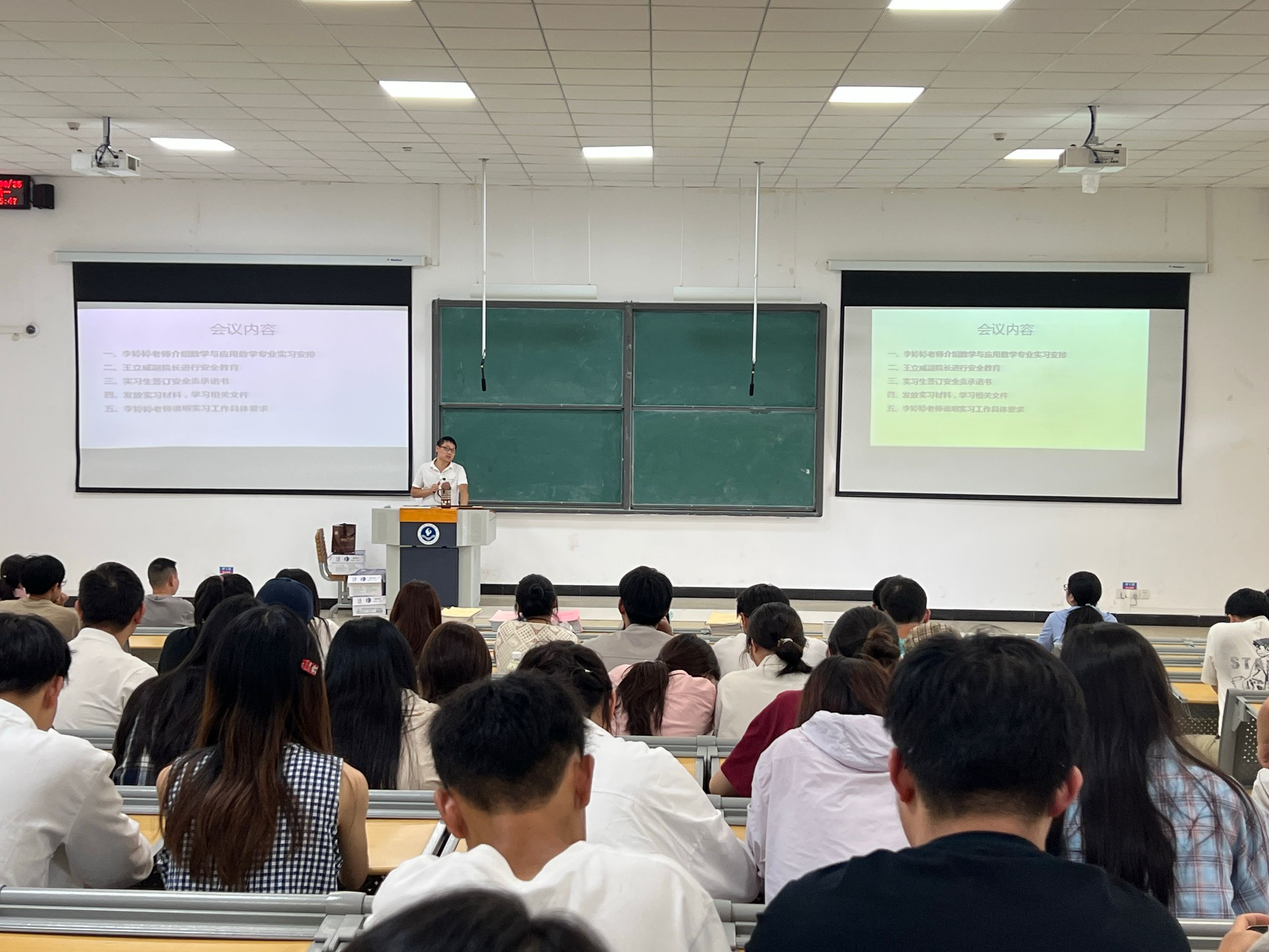 会上,李婷婷老师详细介绍了数学与应用数学专业的实习安排和具体要求。从实习时间节点、实习内容、实习任务、评价标准等方面展开讲解,让实习生对整体实习流程有了明确认知,为实习生指明了实习期间的学习方向与工作重点。