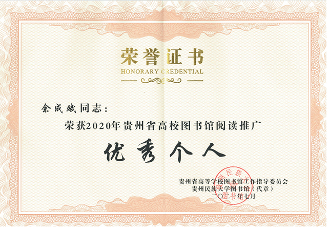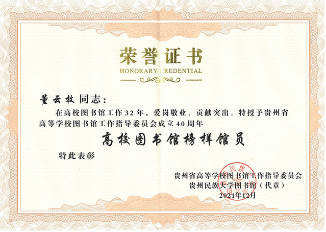 在表彰大会中,bat365在线中国登录入口图书馆董云枚同志荣获贵州省“高校图书馆榜样馆员”荣誉称号,余成斌同志荣获2020年贵州省“高校图书馆阅读推广优秀个人”荣誉称号。