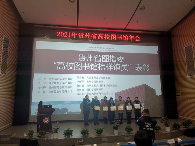 为进一步促进全省高校图书馆事业发展,加强馆际交流, 并对相关单位和个人进行表彰,由贵州省高校图书馆工作指导委员会主办的2021年贵州省高校图书馆年会于12月7日在贵州大学图书馆召开。bat365图书馆馆长郭诗阳,图书馆综合部主任董云枚参加会议。图书馆其他馆员通过线上方式参加学习。