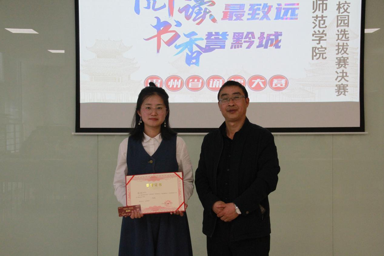 诵读表演结束后,评委老师对各参赛选手的作品内容、普通话、台风等综合表现进行点评。经过评比选拔,本次共评出一等奖1名,二等奖2名,三等奖3名,优秀奖3名,其中穆才敏、朱小雷,以及杨亮亮和孙芙蓉同学组合的作品录音将被推选参加“阅读最致远·书香誉黔城”第二届贵州省诵读大赛复赛。