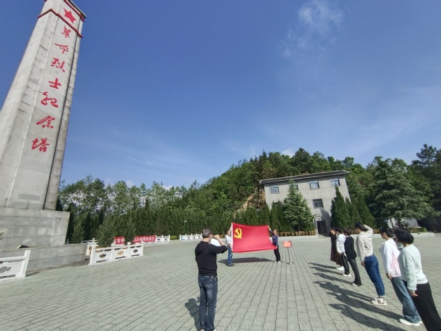 在革命烈士纪念碑前,全体职工列队肃立,沉悼默哀,敬献鲜花,表达对烈士的哀思。随后全体党员同志在革命烈士纪念碑前重温入党誓词。最后,全体职工瞻仰烈士墓碑,回顾红九军团党委委员尹自勇烈士、红九军团战士谢金表烈士、中国人民解放军16军47师141团某营营长黄支书等烈士们的英勇事迹,感受烈士们当年英勇无畏、浴血奋战的精神。