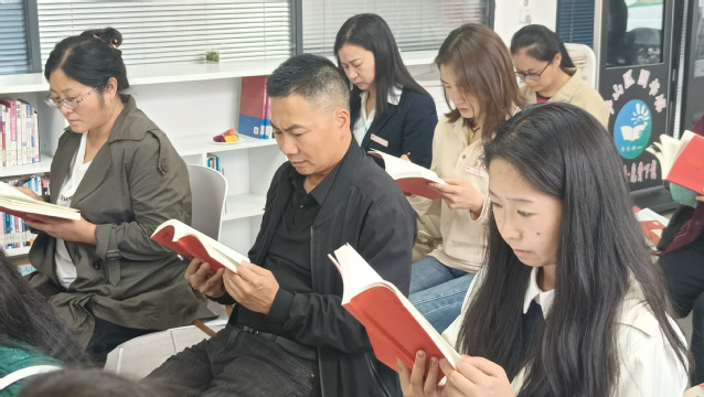 我馆4名馆员积极参与到丰富的活动中,通过共读《红色家书》,感受革命先辈坚定的革命信念和对理想的执着追求;通过朗诵毛泽东诗词《沁园春•雪》,表达对祖国壮丽山河的赞美;通过讨论和书写读书卡,促进了与读者之间的交流与分享。