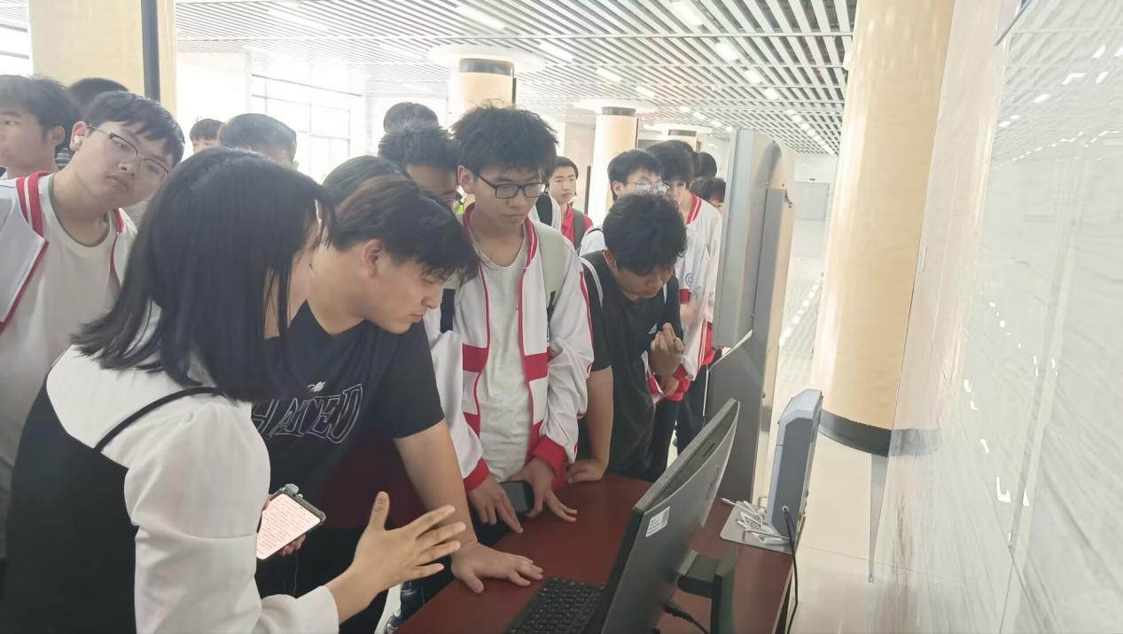 同学们体验自助借还设备、图书检索系统等智能化服务