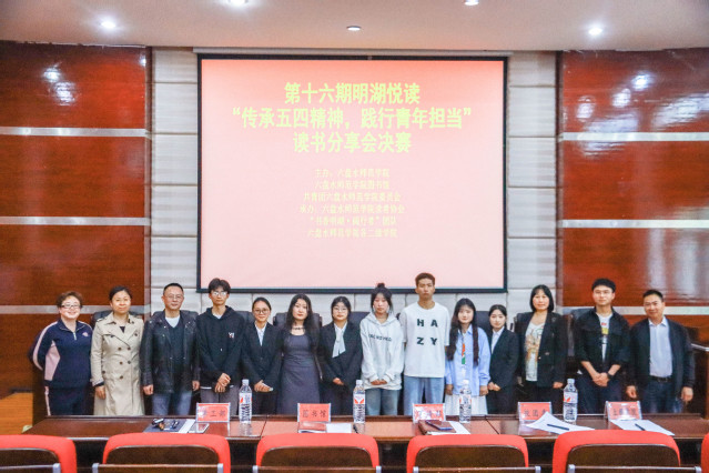 6月6日下午,主题为“传承五四精神,践行青年担当”的第16期“明湖悦读”读书分享会决赛在博学楼知行讲堂举行。学校图书馆副馆长梁斌、党委宣传部文化建设科科长谢春霞、图书馆综合部主任谢文东、党委学生工作部学生资助管理科副科长施毅、团委组织宣传部副部长邓永威担任比赛评委。