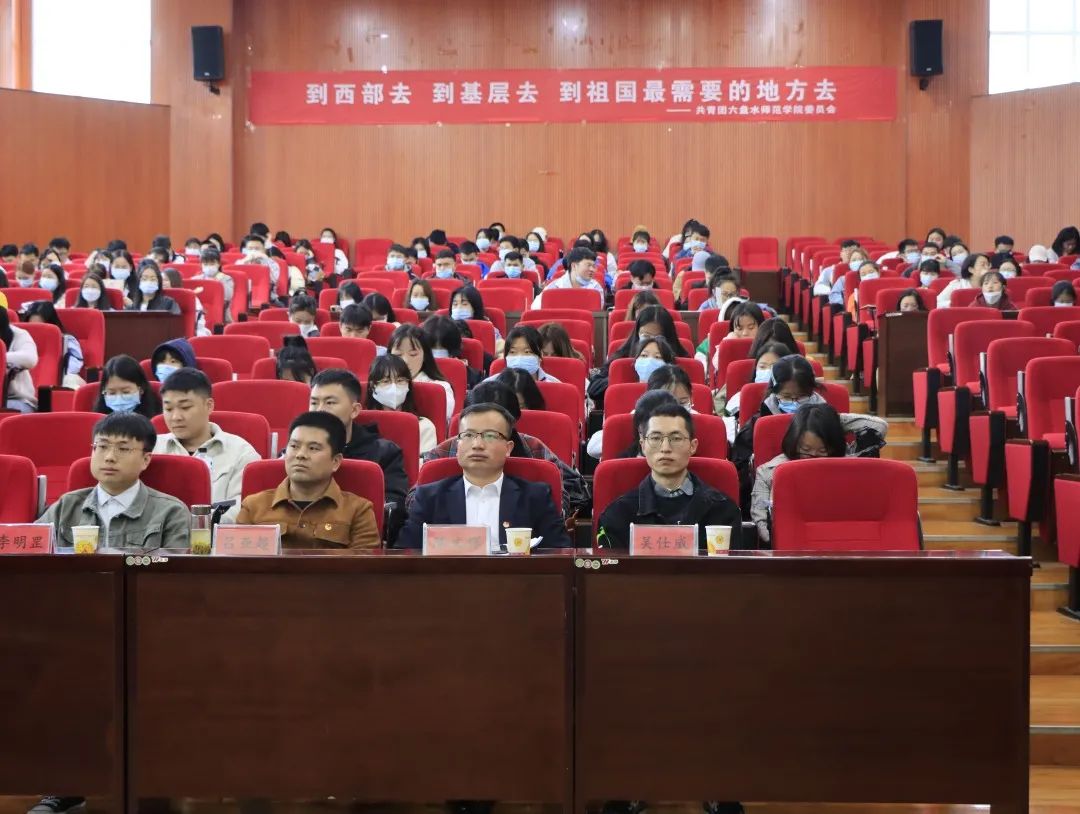 到西部去,到基层去,到祖国最需要的地方去。5月17日,2022年贵州省万名大学生志愿服务西部计划乡村振兴基层项目优秀志愿者宣讲会在博学楼知行讲堂117顺利举行。贵州省志愿者行动指导中心(省青少年维权中心)综合科副科长吕亚超、贵州省志愿者行动指导中心(省青少年维权中心)志愿行动项目科李明罡、六盘水市西部计划项目办联络员吴仕威、学校团委副书记陈文辉出席会议,我省乡村振兴一线服务的优秀志愿者代表及bat365各二级学院毕业班师生代表等200余人参加活动。会议由校团委社团(实践)部陆丽香主持。