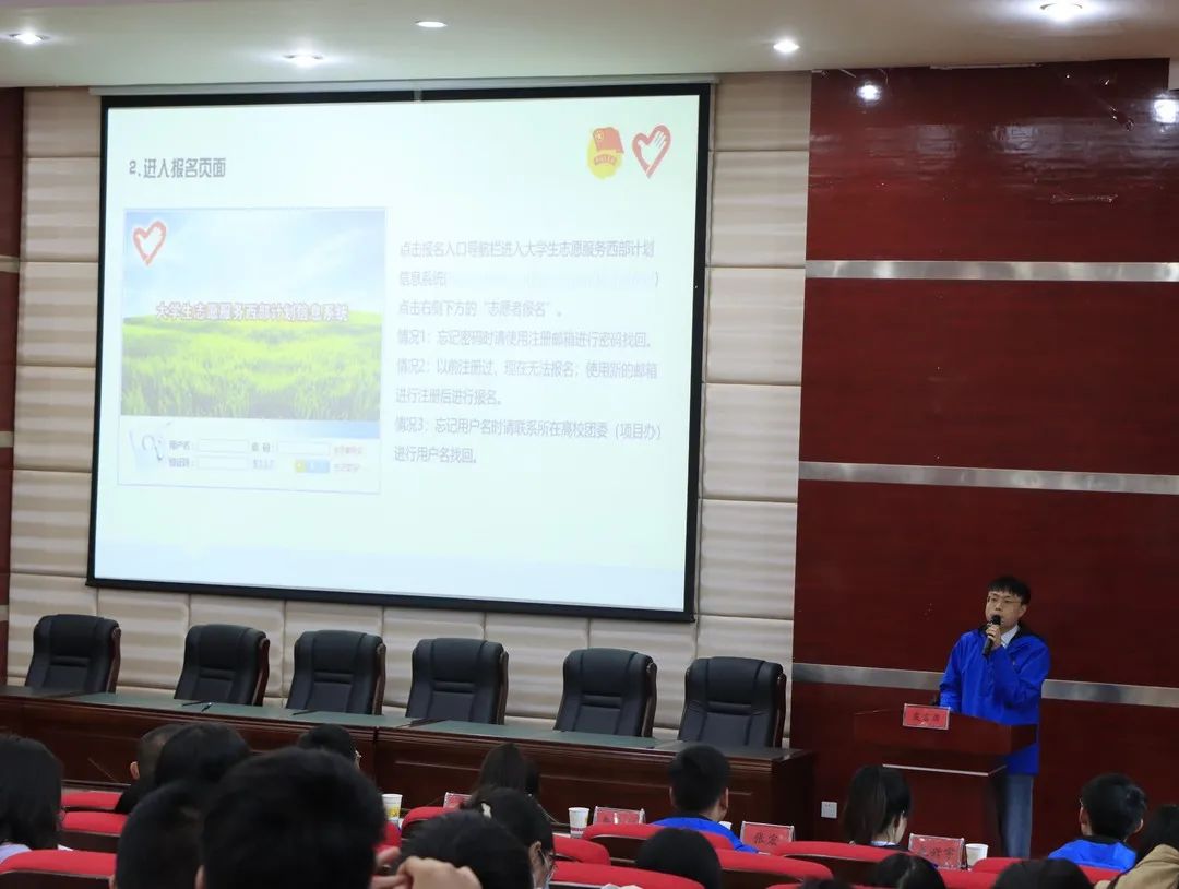 会议最后,由李明罡为大家讲解西部计划的基本流程。他分别从报名、注册、填写个人信息、是否符合报名条件以及志愿服务后的政策问题等方面展开讲解。并对在场的同学们所关心的问题进行一一解答,号召即将毕业的同学们加入西部计划志愿服务大军中。