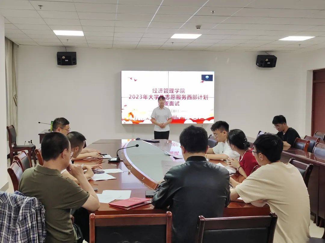 5月30日下午14:00,bat365团委在勤学楼开展了2023年西部计划基层项目志愿者招募线下面试工作;同日下午17:00,在学生活动中心二楼团委会议室进行了线上面试工作。此次面试工作采取“线上+线下”的形式,秉持“公平、公正”原则,保证了面试工作的全覆盖、全包涵。此次活动由校团委副书记陈文辉、组织宣传部副部长邓永威、社团实践部副部长陆丽香、赵庆晏担任面试评委。