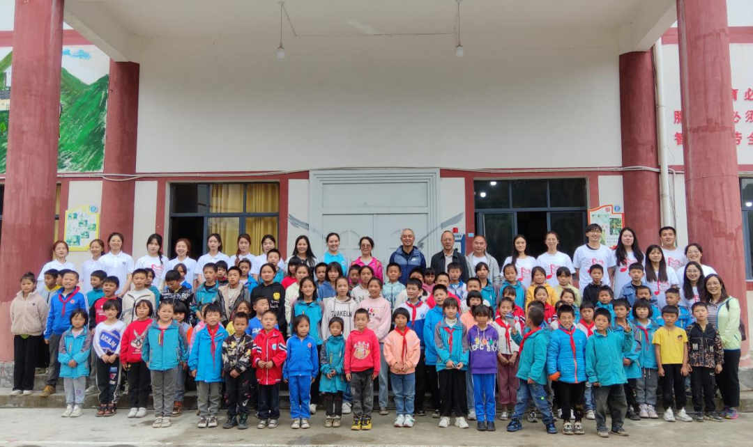 学校领导与海嘎小学学生及带队老师、团队成员合影