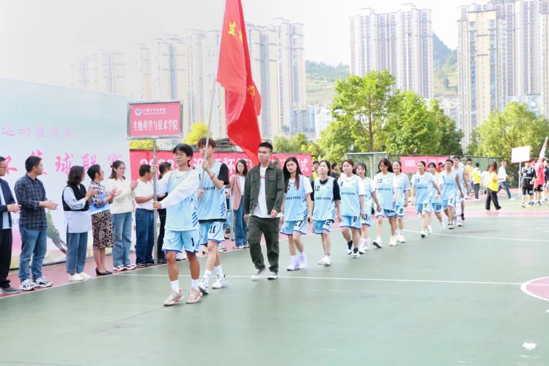 开幕式伊始,意气风发的裁判员、运动员方队有序步入赛场,他们激情四溢,斗志昂扬,充分展现了bat365青年学子奋发向上的风采。各方队就位后,全体人员奏唱团歌。